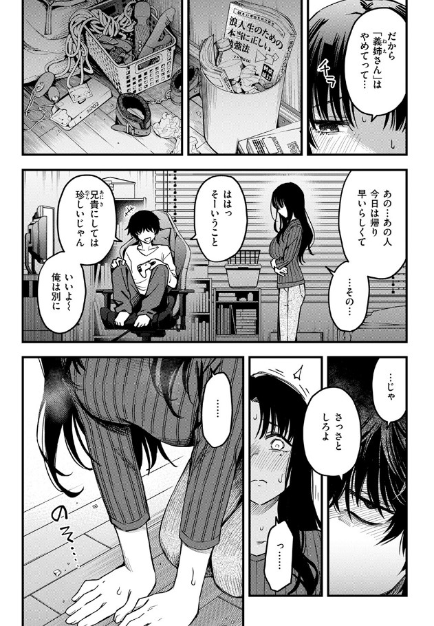 でも、俺が浪人決めて一人暮らしを始めたとき、姉が言ってきたんだ。「一人じゃ大変でしょ? 私たち夫婦の家、広いんだから一緒に住もうよ」って。兄貴も「いいじゃん、家族なんだから」って軽く賛成した。俺は断れなかった。好きな人がすぐそばにいるなんて、贅沢すぎるチャンスだと思った。でも現実は甘くなかった。
