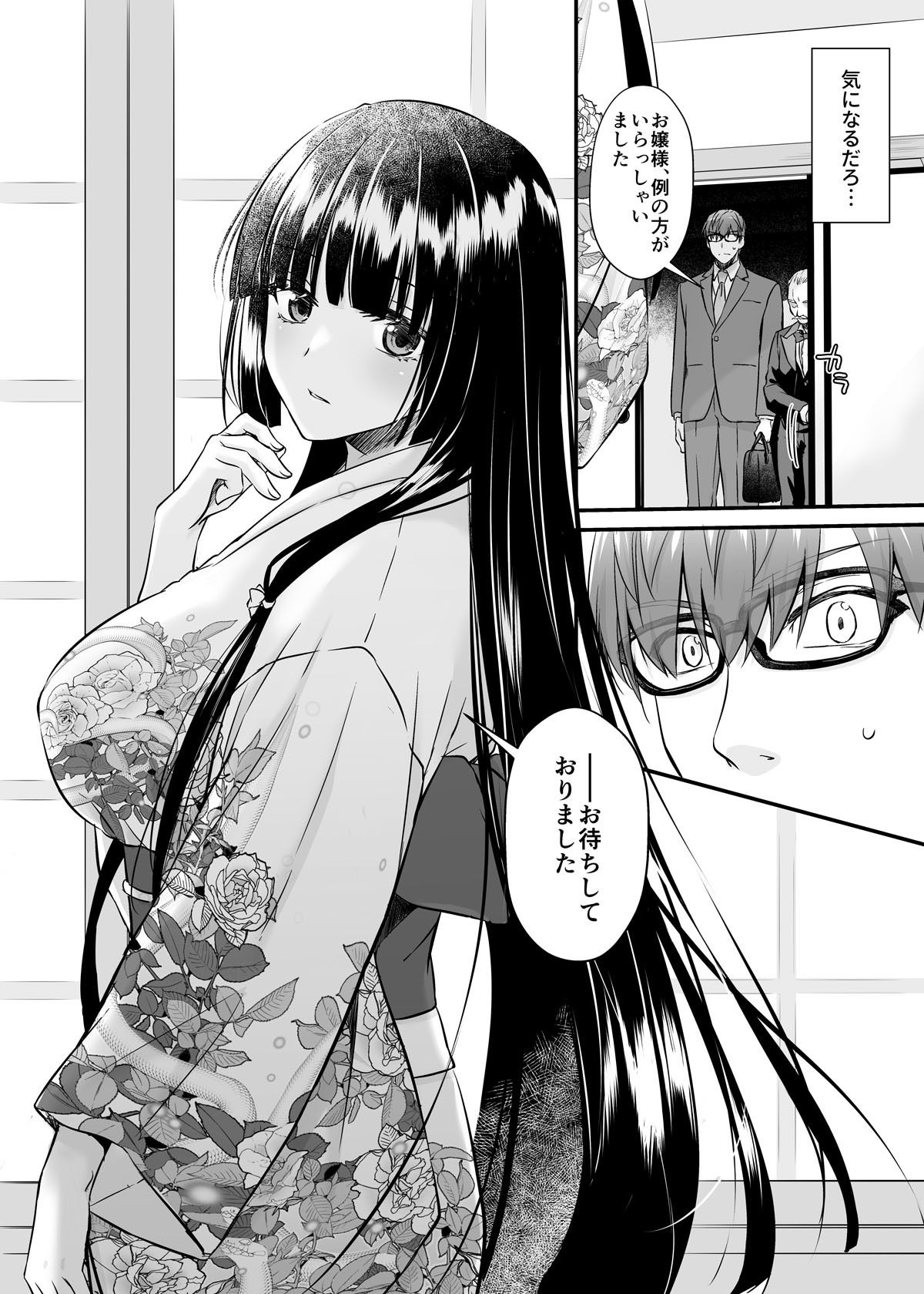 声の主は、黒髪を長く伸ばした和服の女性だった。名前はすみれ。年齢はたぶん三十代の後半くらい。写真で見るよりずっと色っぽくて、でもどこか世間知らずな空気をまとってる。奥の座敷に通されて、まずはお茶をいただきながら話が始まった。