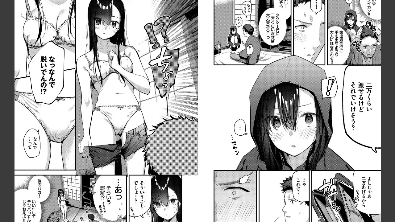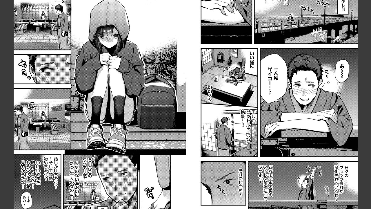 アラサーのサラリーマン・磯崎健が旅行先で出会った家出娘・城崎明衣。勘違いから始まった肉体関係は次第に二人のココロまでつながっていく…。濃厚で超あまあまな運命エロスが大ヒットし、本作の表題となった100ページ超の長編大作『旅先で家出少女を拾った』シリーズ♪
