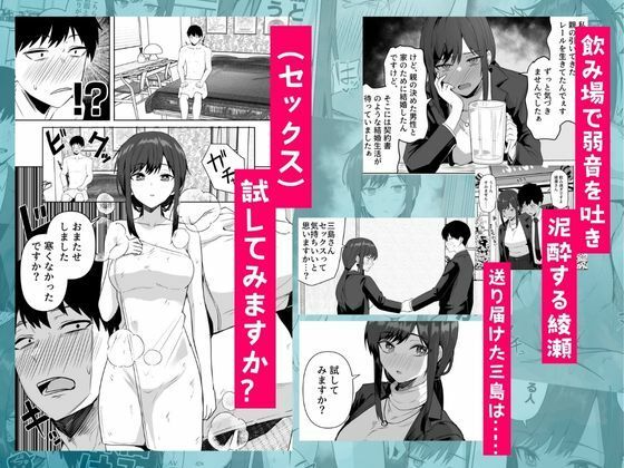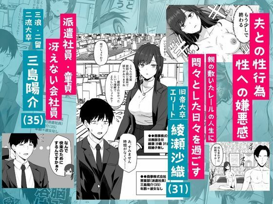 綾瀬詩織は名家出身の31歳エリートOL。夫とのセックスに不満を抱き、性に嫌悪感を持っていた。会社で派遣社員の三島陽介を格下扱いするが、残業後の飲みで弱音を吐き、泥●。家で三島を誘い、童貞の彼の巨根で初めての快楽を知り……。