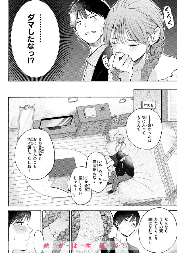 親御さんが下にいるにもかかわらず、「口でしたげる」なんてもえちゃんが言い出して……。