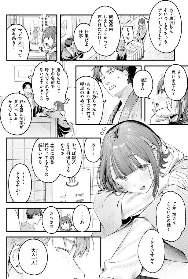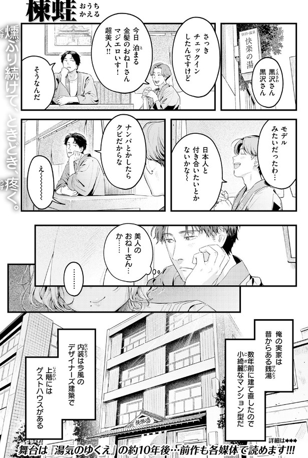 オンボロだった実家銭湯はリノベーションされ、今は俺が中心になって経営を続けている。エマとはかろうじて繋がっていて、たまに近況は教えてくれるものの、あれっきり一度も対面できていない。年下の女性スタッフ・月乃(つきの)ちゃんがなんだか距離を詰めてくるけど、なんとなくかわしてしまう。