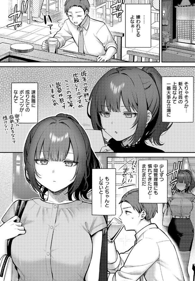 中間管理職になりたて桧山は、巨乳で優秀な新入社員・水無瀬からたびたびミスを指摘され落ち込んでいた。